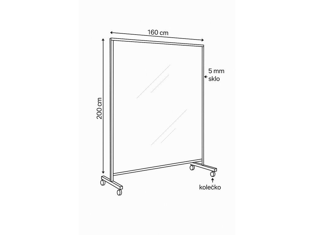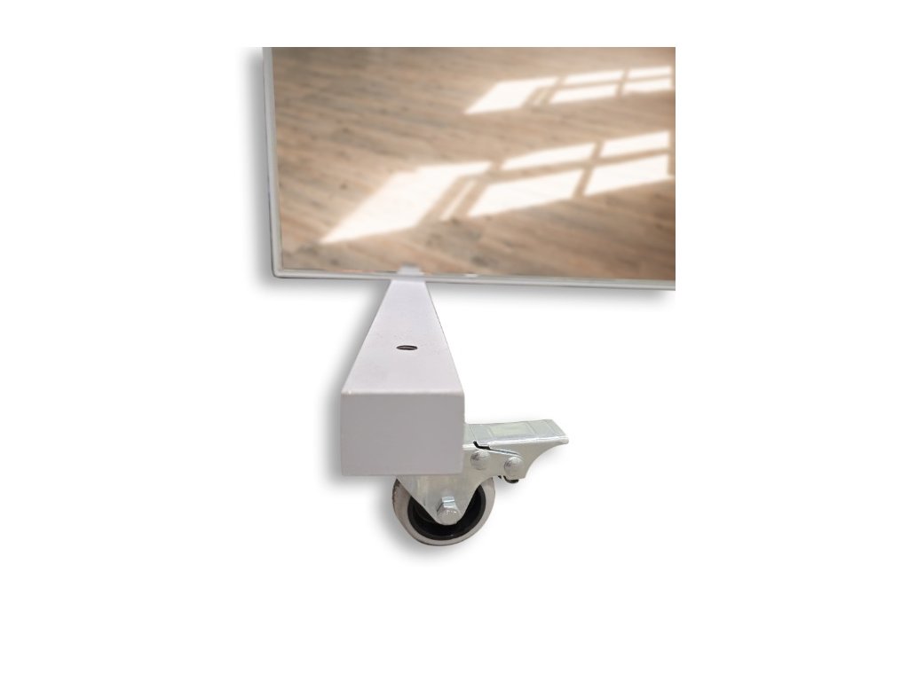 Mobilné zrkadlá sa vyrábajú na zakázku, doba dodania cca 14 dní, lakovanie rámu podľa priania zákazníka.Parametr Hodnota Rozmery zrkadla (š × v) 160 cm × 200 cm Hrúbka skla 5 mm, lepené bezpečnostné sklo Konštrukcia Stabilný oceľový rám, povrchová úprava práškovým lakom Podklad zrkadla Pevná nosná doska, celoplošné lepenie zrkadla Mobilita 4 otočné kolieska s brzdou Bezpečnosť Nerozbitné prevedenie, zrkadlo pevne fixované Hmotnosť cca 65 kg (orientačné, podľa prevedenia) Použitie Tanečné sály, baletné školy, fitness centrá